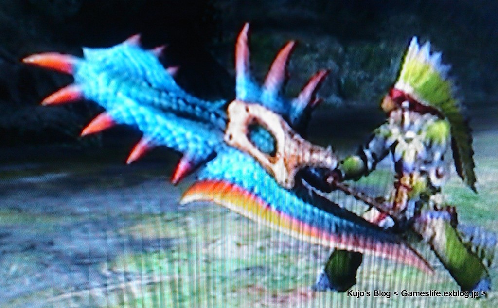 除了素材的部分其他都很優秀的斧,龍屬性雖然只有劍型態才會發動,但是由於劍型態下比較不容易彈刀,反而容易進行連續的定點攻擊(雙刀優勢)。我是拿他打死村最終BOSS的。
