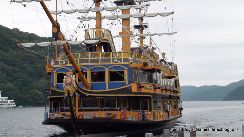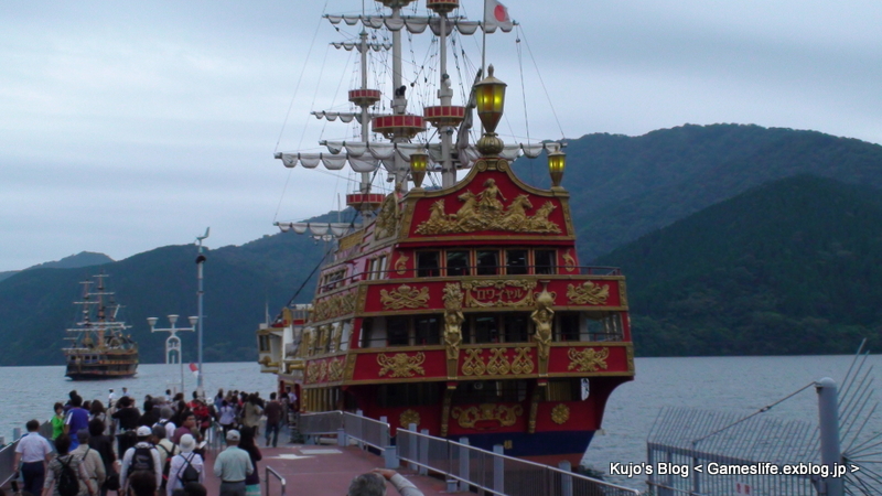箱根海賊船!沒錯就是要搭這個啦~ 由於有FREEPASS的關係搭這個也不用錢,黑黑。不過從人潮就可以知道這是一個還蠻熱門的景點,還沒開傳就一大堆人在排隊了,還排到下來的樓梯上咧~