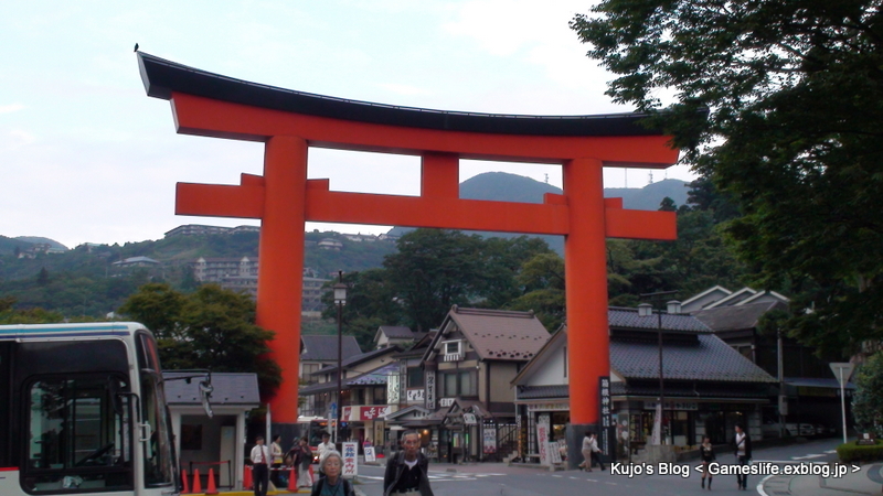 走了大約20分鐘,終於到達了巴士亭,前面有個很大的紅色鳥居,下面寫著"箱根神社",過去就是比較熱鬧的商店街。不過因為到了該去CHECK-IN的底限時間了,所以沒過去那邊一探究竟,直接搭乘巴士往這趟的主要目的地~「吟遊」。